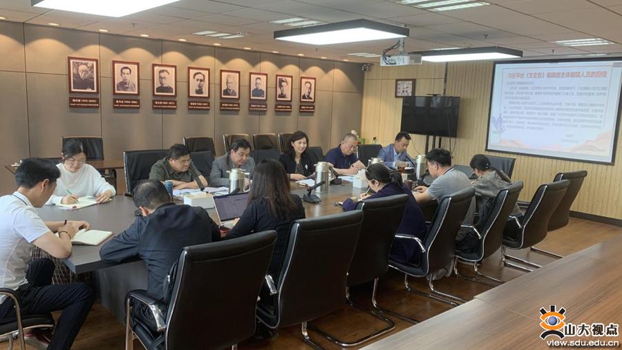 会上,刘军领学了习近平总书记给《文史哲》编辑部全体编辑人员的回信,与会人员学习热情高涨,就学习体会与感想展开交流分享。