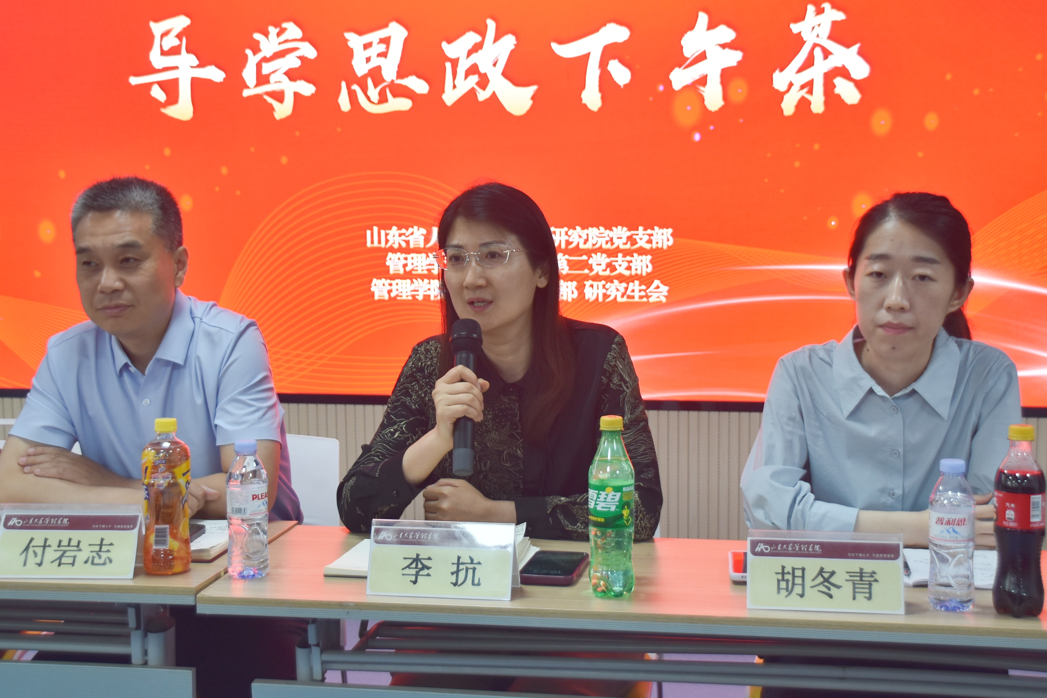 [本站讯]5月21日下午,管理学院举办“党建引领,人才赋能”导学思政下午茶活动,学院党委书记付岩志、党委副书记李抗,山东省人才发展战略研究院党支部书记胡文安、助理研究员胡冬青参加活动。