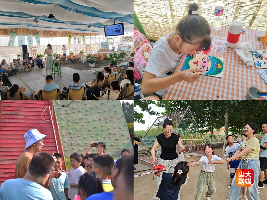 “海韵扬帆”支教队在威海荣成撒野农场开展“一起来撒野”主题支教,采取“文化传承课堂+户外实践体验”的形式,打造《文化溯源:让古老文字“活”在课堂》《穿越时空:沉浸式触摸历史脉络》特色“谷粒”课堂,通过甲骨文猜字、历史情景剧、中华武术、京剧脸谱板绘等特色活动,让孩子们触摸文明脉络;开展匍匐沙地、攀爬树干等野外挑战,急救包扎、绳结搭建等生存技能训练,让孩子们在实践中强健体魄、磨砺意志。