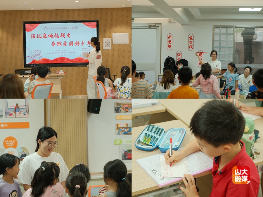 “泉城薪火”调研宣讲团走进济南历下区甸柳新村第一社区,为小朋友们带来一场特色济南抗战历史宣讲。教学以“小石头的日记”为线索层层展开,并设置“我是小小侦察员”“米汤显影传秘信”等互动环节,盘活红色资源,让学生在兼具严谨性与体验感的活动中铭记峥嵘岁月、传承红色精神。