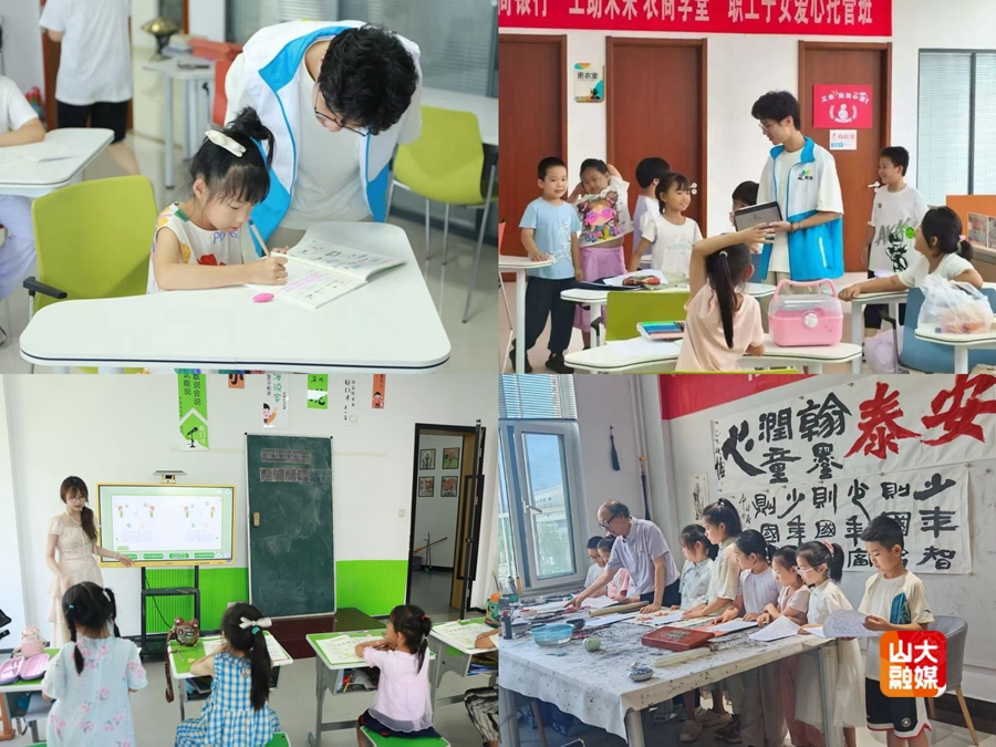 “萤窗共话”实践队加强与社区的联动配合,前往爱心托管班、安泰社区、府前社区同步开展支教活动,在课业辅导50余名巩固学科知识的同时,开设折纸、绘画、书法、科普实验等趣味课程,让中华优秀传统文化在更多孩子们心中生根发芽。