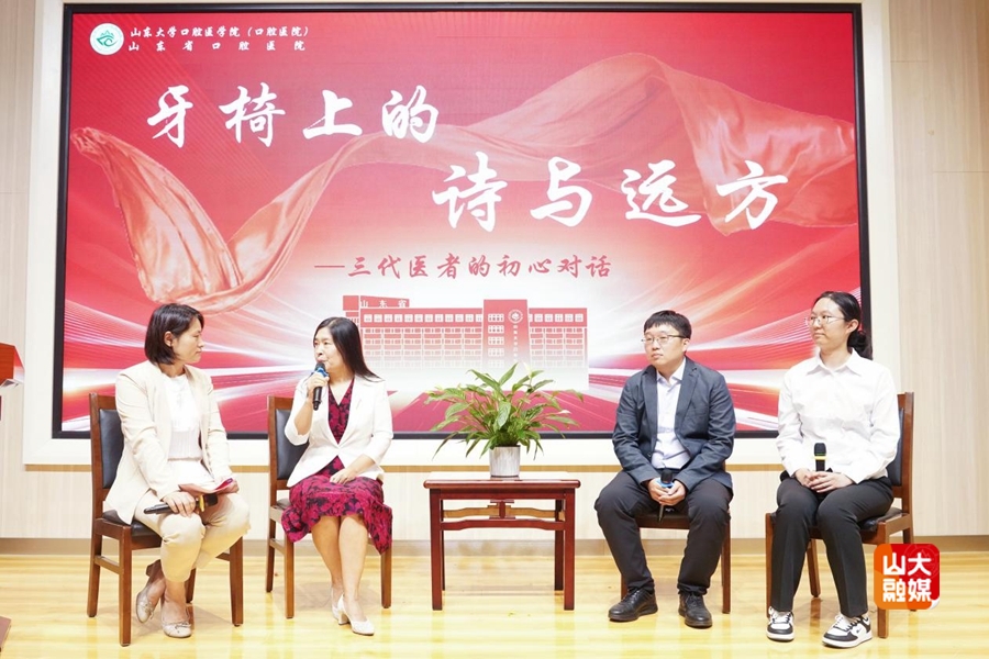 活动现场,副院长宋晖带领全体医师进行了庄严宣誓。山大口腔中国医师节主题形象片《光》震撼开场,生动展现了“口院好医生”的责任与担当。医师代表李涛、魏玲玲深情朗诵了诗歌《写给医生的赞歌》,献上对全体医者的崇高敬意。护理同仁代表马兆云、靳宁等倾情演唱《送你一朵小红花》,用歌声致敬并肩作战的白衣战友。熊世江、李青、周祉延三代医者在《牙椅上的诗与远方》节目中,共话初心与使命。