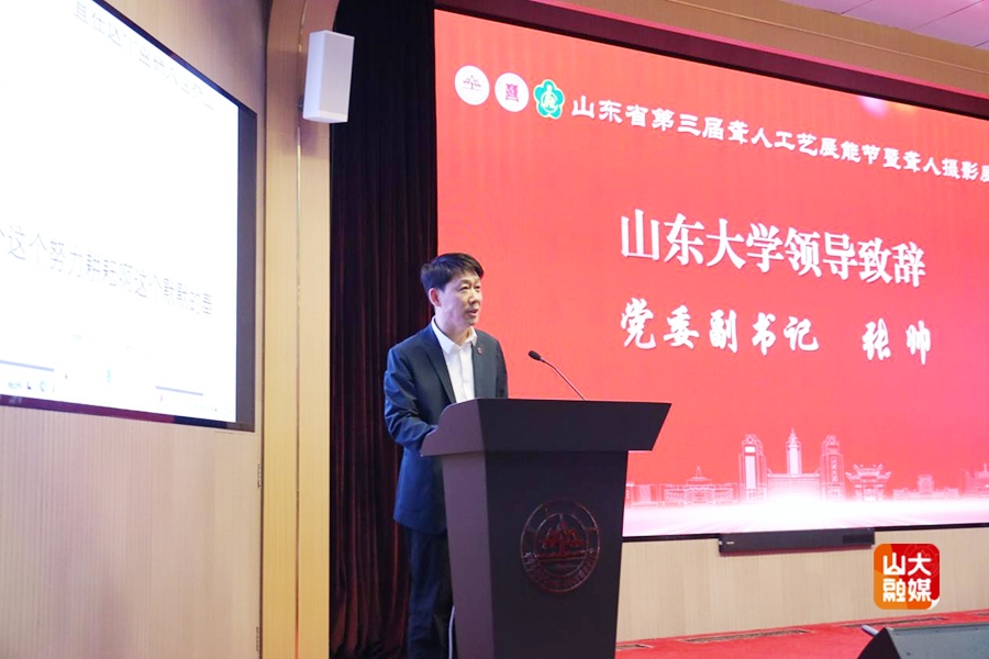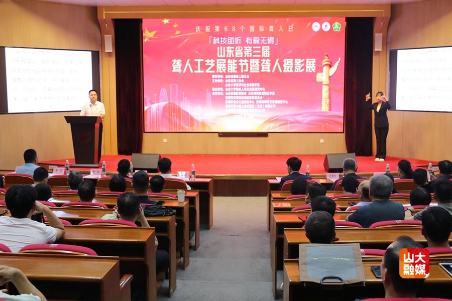 [本站讯]9月28日,以“科技助听,有爱无碍”为主题的山东省第三届聋人工艺展能节暨聋人摄影展活动在山东大学中心校区举行,校党委副书记张帅,山东省残疾人联合会党组成员、副理事长张文涛,山东省文学艺术界联合会党组成员、副主席于惠东,山东特殊教育职业学院党委书记杨磊出席活动。中国聋协副主席、山东省聋协主席孔军强主持活动。