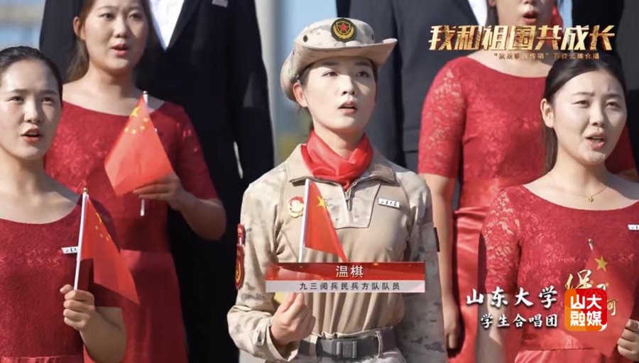 [本站讯]近日,为纪念中国人民抗日战争暨世界反法西斯战争胜利,黄河干流沿线多所高校共同策划制作的《保卫黄河》歌曲视频正式发布。在山东大学党委宣传部的精心组织下,由孔南老师任指挥,艺术学院60名学生组成的山东大学合唱团与山东大学岩土工程团队、焦家遗址考古团队携手河南大学、重庆大学、四川大学、太原理工大学、西安电子科技大学、延安大学、兰州大学等兄弟院校师生,以云端合唱的特别形式,用青春之声共同唱响民族强音,致敬光辉历史,赓续红色血脉。
