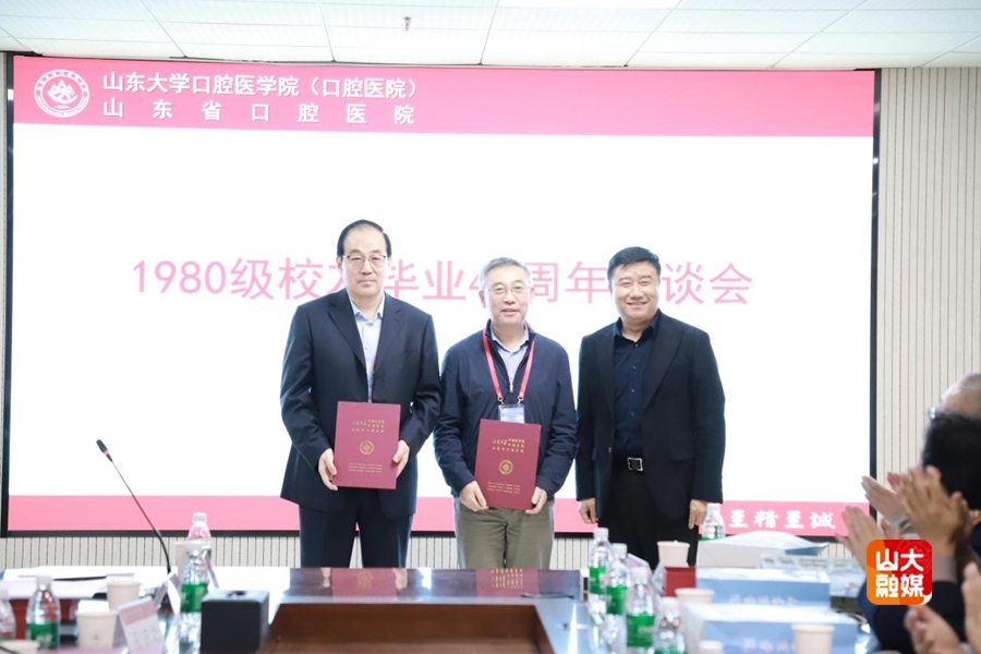 [本站讯]10月10日,山大口腔1980级校友毕业40年返校活动举行。学院(医院)原党委书记、1980级校友辅导员张志华出席座谈会。学院党委书记张青出席活动并为校友班级理事颁发聘任证书。座谈会由学院党委副书记齐山华主持。
