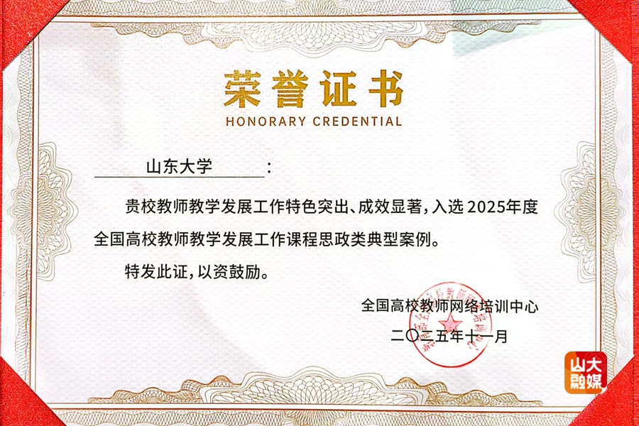 中心从2017年开始就逐步推进课程思政建设工作,通过课程思政专题讲座、工作坊、研修班等各种形式提升教师课程思政意识与能力,并通过评选课程思政教学优秀案例、课程思政示范课程与先进建设单位,开展课程思政建设立项等多种措施推进课程思政走深走实。中心牵头成立的“山东大学课程思政教学研究中心”于2021年获评国家级课程思政教学研究示范中心。通过系统促进教师将思政元素融入人才培养全过程,推动教师深入探索数智化时代的课程思政教学创新;尤其注重结合学校人才培养目标,提升教师培养领军人才的意识与能力,从而推进科产教融合开展高质量的课程思政建设,中心逐步形成了课程思政建设的“山大模式”。同时通过举办区域性和全国性课程思政专题讲座、会议和研修班分享课程思政建设的“山大智慧”,为全国高校也提供了可借鉴的实施路径。此次获奖,正是对山东大学课程思政建设实践成效的充分肯定。