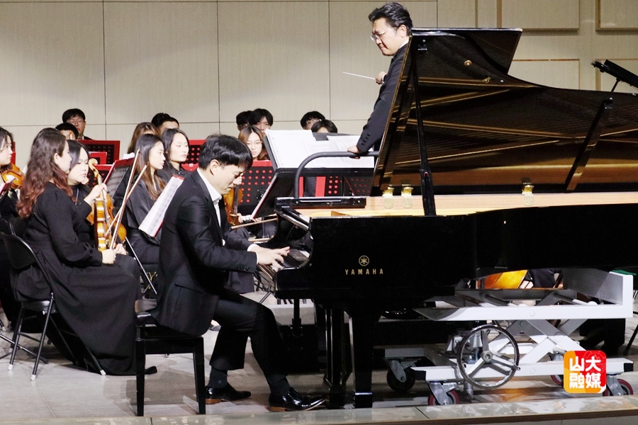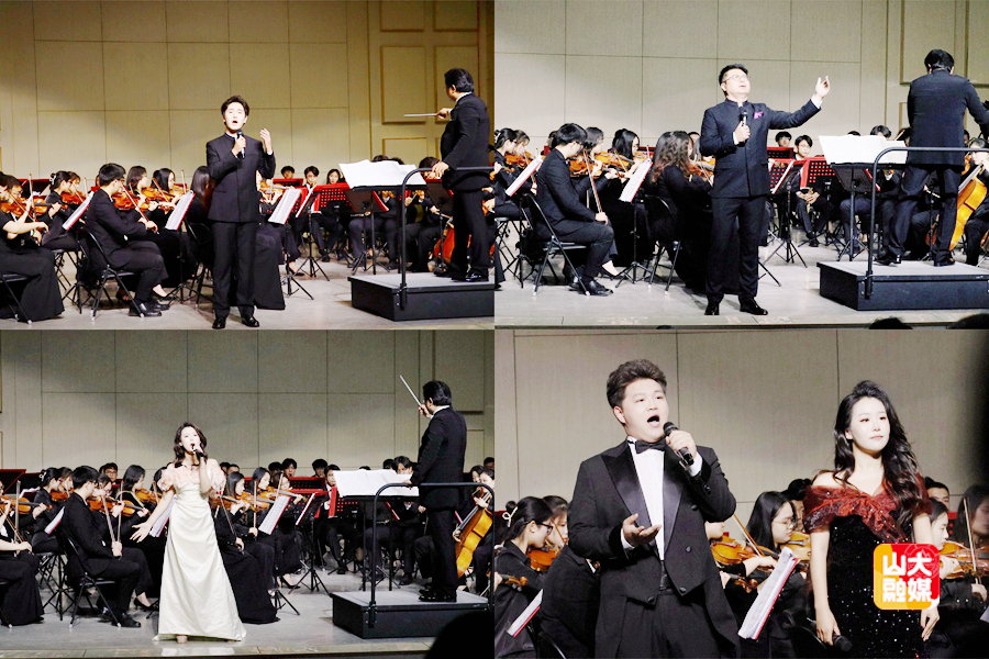 音乐会由艺术学院教师孔南任指挥,青年教师徐驰,外籍教师文奉俊,学生徐艺丹、刘一敏、高远等精彩献艺。音乐会精心设计了两个主题。第一主题为“时代华章·育贤使命”,乐团为两校师生演绎了山东大学原创声乐套曲《为国育贤》。作品以“为天下储人才,为国家图富强”为核心立意,生动展现山东大学120年来与民族共命运、与时代同奋进的奋斗历程;以音乐为载体,用恢宏的乐章深刻诠释了百廿学府为国育贤的初心与担当。作品宏大的叙事结构与细腻的情感表达相得益彰,旋律时而激昂澎湃,时而深情隽永,引领听众穿越历史长廊,感受教育事业的崇高与伟大。第二主题为“黄河精神·民族颂歌”,乐团奏响了《第一交响序曲》和钢琴协奏曲《黄河》的壮丽乐章,在乐团师生的默契配合下,再现了黄河的磅礴气势与中华民族不屈不挠的奋斗精神,激昂的琴声与恢弘的管弦交相辉映,将音乐会推向高潮。在现场观众的强烈要求下,乐团为观众加演了《钢铁洪流进行曲》《太阳出来喜洋洋》和《我的祖国》三首作品。