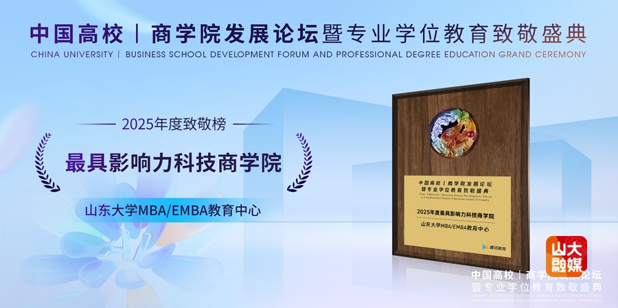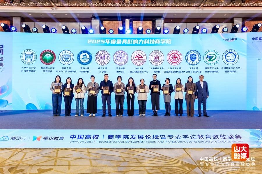 会上,山东大学MBA/EMBA教育中心荣获“2025年度最具影响力科技商学院”奖。