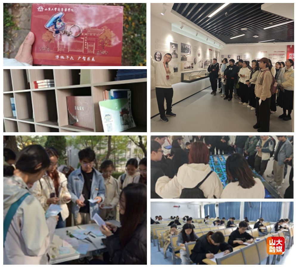 “校园寻宝”环节中,同学们化身“校园寻宝探险家”,在限定时间内奔赴校园各个角落开启搜寻之旅。中心花园的长凳下、号院的丁香树丛旁、“金兰之谊”雕像的基座边,都留下了大家驻足寻觅的身影,定制文创便藏在这些承载着岁月记忆的角落中。“史馆探秘”环节中,宣讲团的讲解员们化身“历史引路人”,带领大家走进崭新的齐鲁医学史馆,开启一场跨越时空的医学文脉之旅。馆内的珍贵史料、老物件与图文展板相映成趣,讲解员们以生动叙事串联起齐鲁医学的百年发展脉络——从初创时的薪火微光,到炮火中的砥砺前行,再到新时代的薪火相传。紧随其后的“游园打卡”环节更是趣味盎然。宣讲团的讲解员们在教学三楼、教学五楼、教学八楼及四百号院等标志性地点设立打卡点,生动讲述趵突泉校区的古建筑背后承载的岁月故事。活动现场氛围热烈,同学们踊跃参与答题互动,在趣味问答中深化对校园历史与医学文脉的认知。完成挑战还能领取定制主题明信片并加盖专属印章,既定格了这场沉浸式学习的美好记忆,更让齐鲁医学的历史底蕴在边走边学、边答边悟中深入人心。压轴环节“知识竞赛”中,同学们凝神思索、认真作答,在一个个医学史知识点的交锋碰撞中,触摸齐鲁医学跨越百年的历史温度;在对发展脉络的梳理回溯中,体悟“医者仁心”的厚重分量与精神传承。