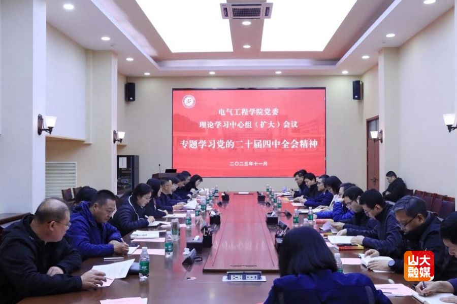 [本站讯]11月17日,电气工程学院党委理论学习中心组召开学习(扩大)会议,专题学习党的二十届四中全会精神,重点围绕《习近平:关于〈中共中央关于制定国民经济和社会发展第十五个五年规划的建议〉的说明》开展深入学习研讨。学院党委书记殷录民主持会议并领学,院长丁磊等领导班子成员作交流发言,山东大学理论学习中心组学习巡听旁听工作组成员列席会议。