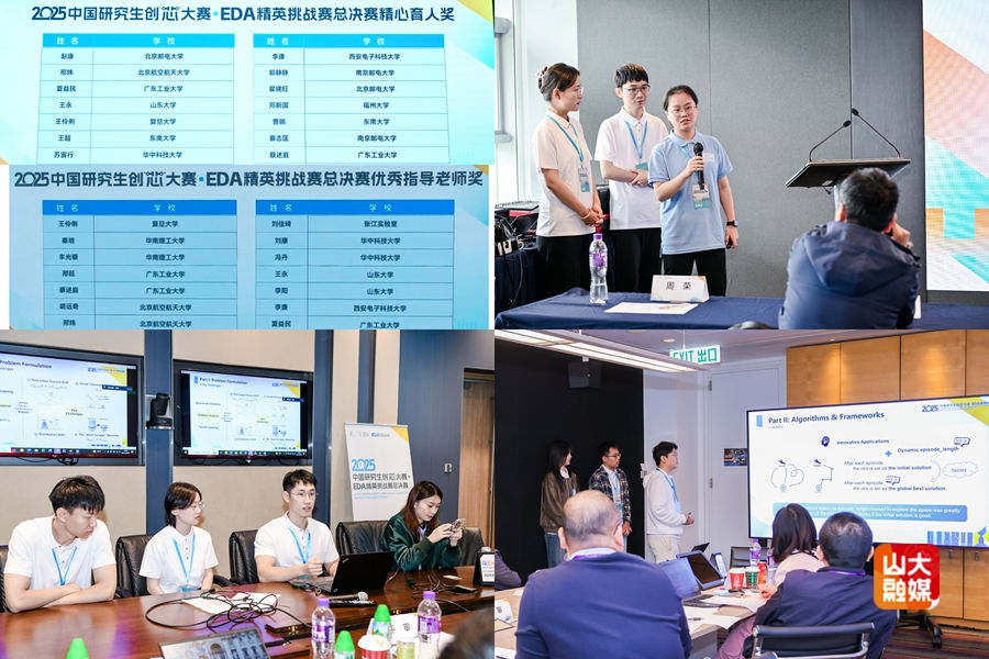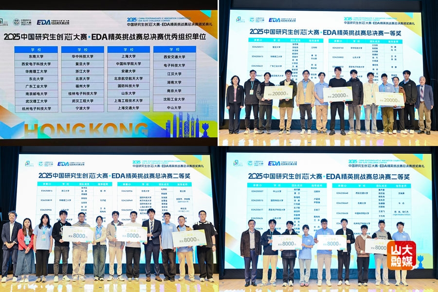 [本站讯]11月28日至30日,2025中国研究生创“芯”大赛·EDA精英挑战赛总决赛(以下简称“大赛”)在香港举行。山东大学集成电路学院参赛团队获大赛企业赛道一等奖1项、二等奖2项,指导老师王永教授获精心育人奖,指导老师王永教授和李阳教授获优秀指导老师奖,同时山东大学荣获优秀组织奖。