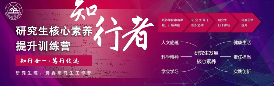 “知行者”研究生核心素养提升训练营是学校于2021年启动的研究生思想政治育人品牌,由研究生院、党委研究生工作部主办,研究生团工委协办。包括党建引领、创赛创新、校园文化、安全教育、就业指导等研究生思想政治工作关键内容。品牌紧扣文化基础、自主发展、社会参与三大框架,着力提升人文底蕴、科学精神、学会学习、健康生活、责任担当、实践创新六类核心素养能力。自创立以来,已累计开展活动80期,直接服务研究生数万人次,是山东大学研究生思想政治教育“五者”品牌之一,也是学校研究生思想政治工作体制机制下沉的代表平台,可开放给培养单位申报,校院联动实施。品牌建设将继续坚持“知行合一”的建设理念,强化教育链、人才链与创新链的有机衔接,为培养具有家国情怀、全球视野、创新精神与实践能力的“最具创造力的研究生”提供坚实保障。