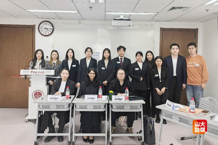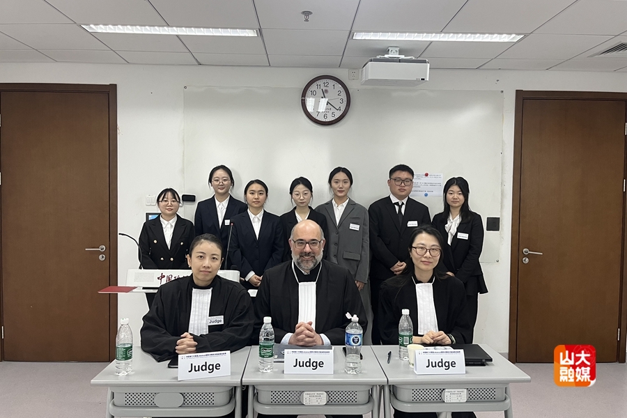 山东大学代表队由2023级本科生王欣妍、季子涵、张旭、陈卓尔担任庭辩员,2024级本科生冯嘉雯、何漪朵担任研究员。队员们均为首次参赛。书状撰写阶段,队员们分工协作,逐句打磨法律措辞,从论证严谨性到格式规范,反复推敲诉状逻辑结构,对每一个法律论点都进行多角度论证,先后修改数稿。比赛中,赛队先后与国内多所顶尖法学院校同台竞技。面对法官犀利的提问,队员们凭借扎实的法律功底、流利的英文表达和敏捷的临场反应,赢得在场评委的认可。在与多所高校的交流中,团队既看到了与顶尖队伍的差距,也从对手的庭辩风格中汲取了宝贵经验。