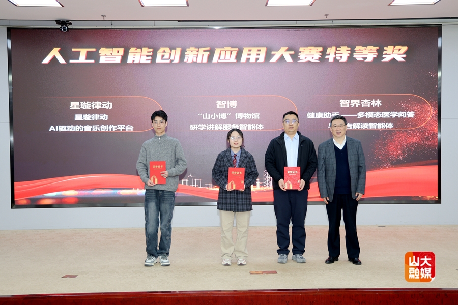 本次科技节还举行了2025年山东大学AI赋能典型案例、首届人工智能创新应用大赛颁奖仪式,中国电信、华为、智谱华章、火山引擎等企业的行业专家围绕异构算力互联、AI驱动科学研究新范式、AI安全等主题作前沿报告。